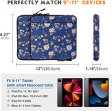 MoKo 9-11 Inch Tablet Sleeve Bag Carrying Case with Storage Pockets Fits iPad air 5 10.9" 2022, iPad Pro 11 2021/2020, iPad 9/8/7th Gen 10.2, iPad Air 4 10.9, Tab A 10.1, Tab S8 11", Blue Flowers