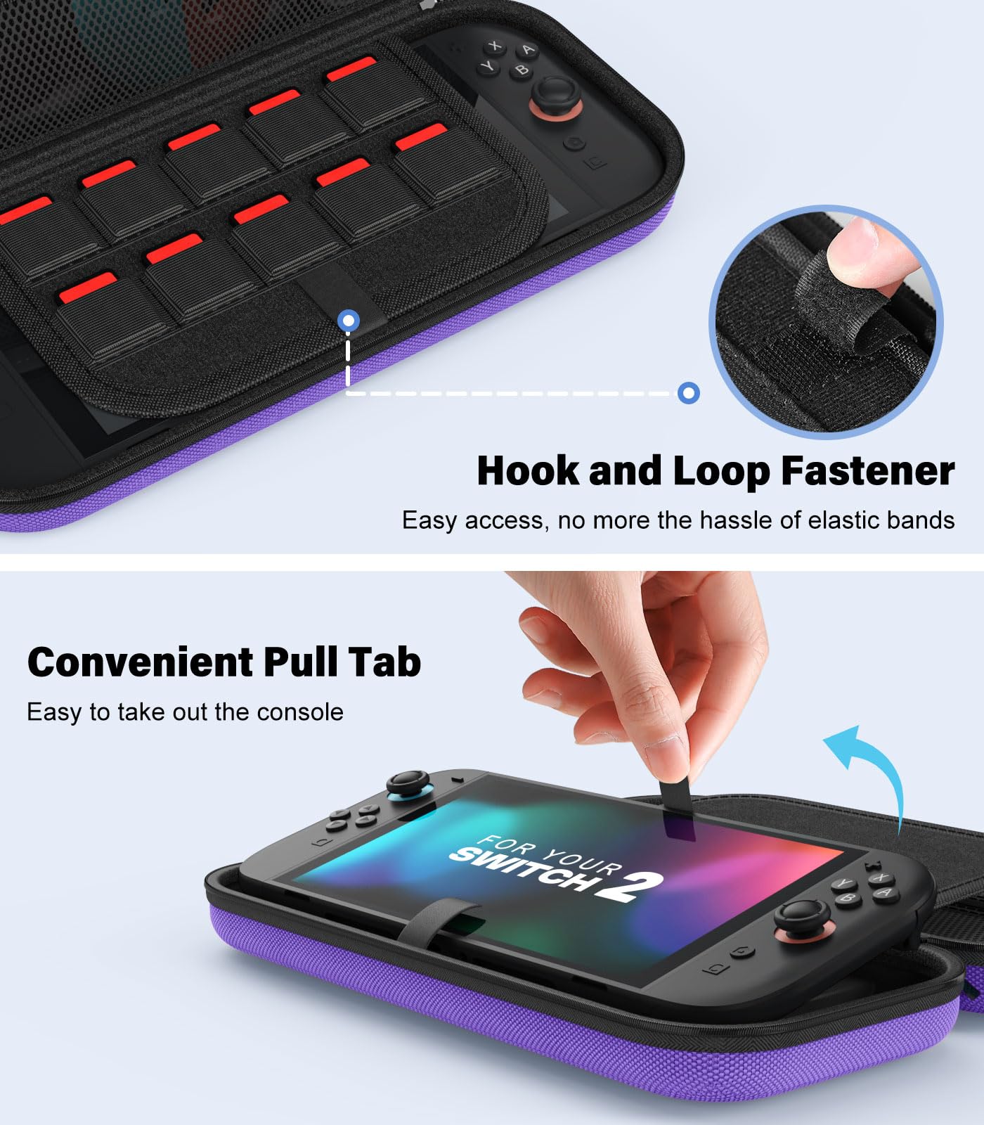 - Compatibility: MoKo nintendo switch 2 case is tailored for Nintendo Switch 2, ensuring your console and accessories are secured. Upgraded tab repalces two elastic straps, make it easier to put in and take out. Whether for travel or daily storage, the switch 2 case provides ideal protection.