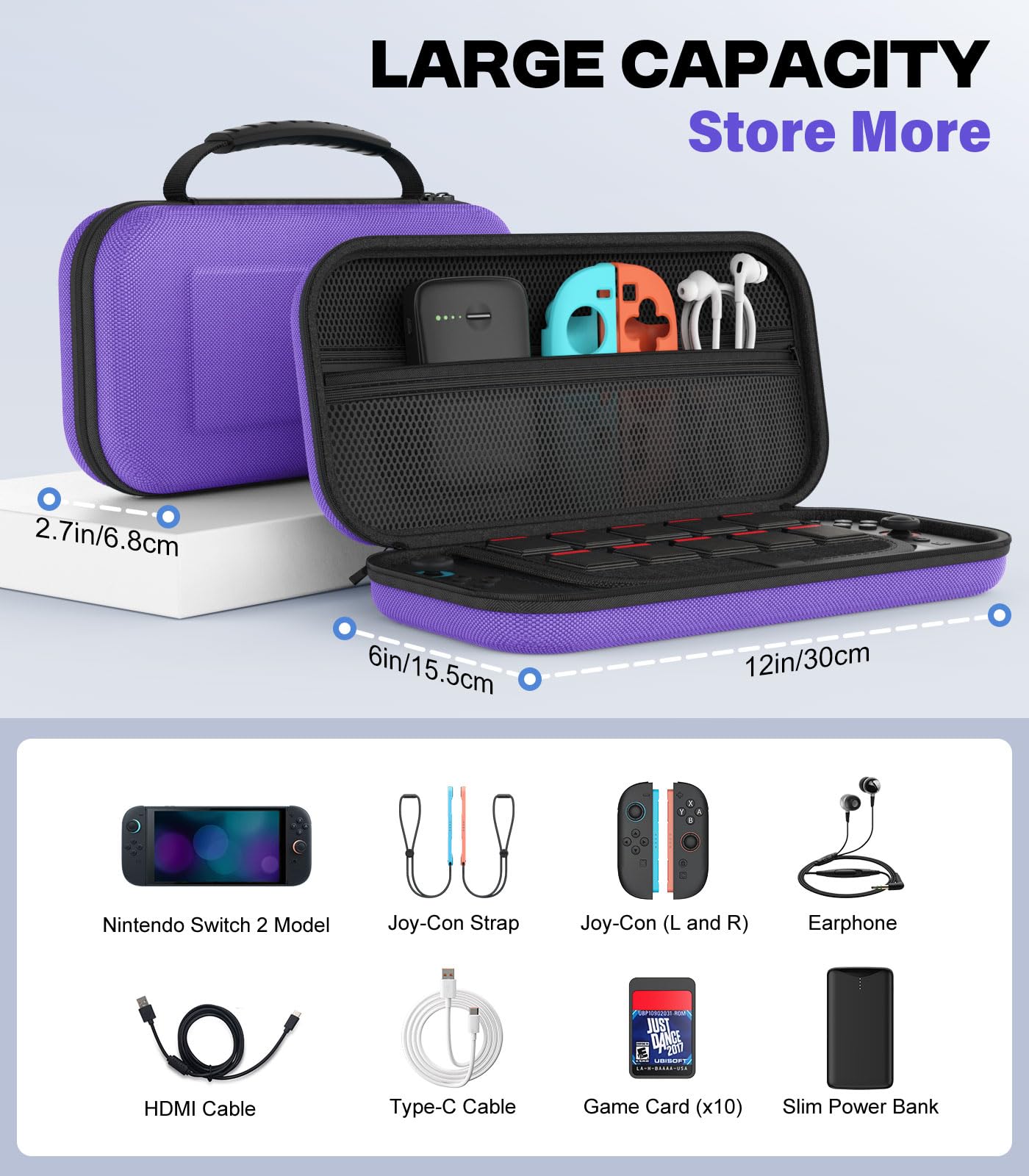 MoKo Carrying Case for Nintendo Switch 2 2025, Protective Hard Shell Portable Travel Carry Case Pouch Holds 10 Cartridges w/Pockets for Switch 2 Accessories and Games, Purple