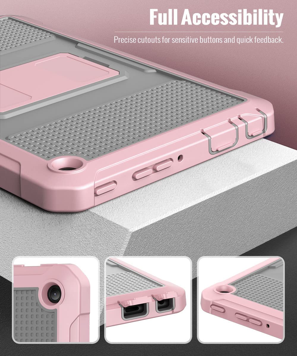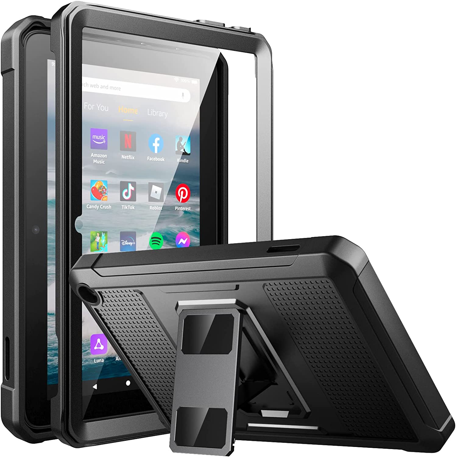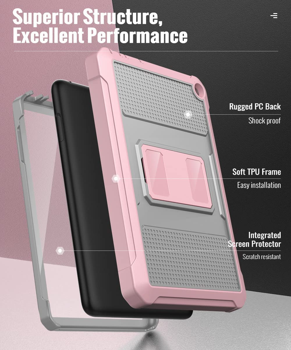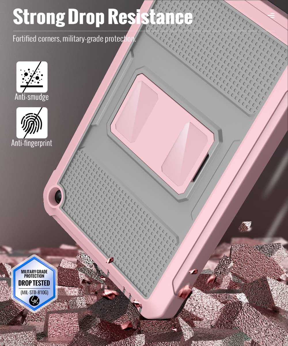 MoKo Case Fits with Amazon All-New Kindle Fire 7 Tablet (2022 Release-12th Generation) Latest Model 7", Full Body Rugged Hands-Free Viewing Stand Back Cover with Screen Protector, Gray/Pink