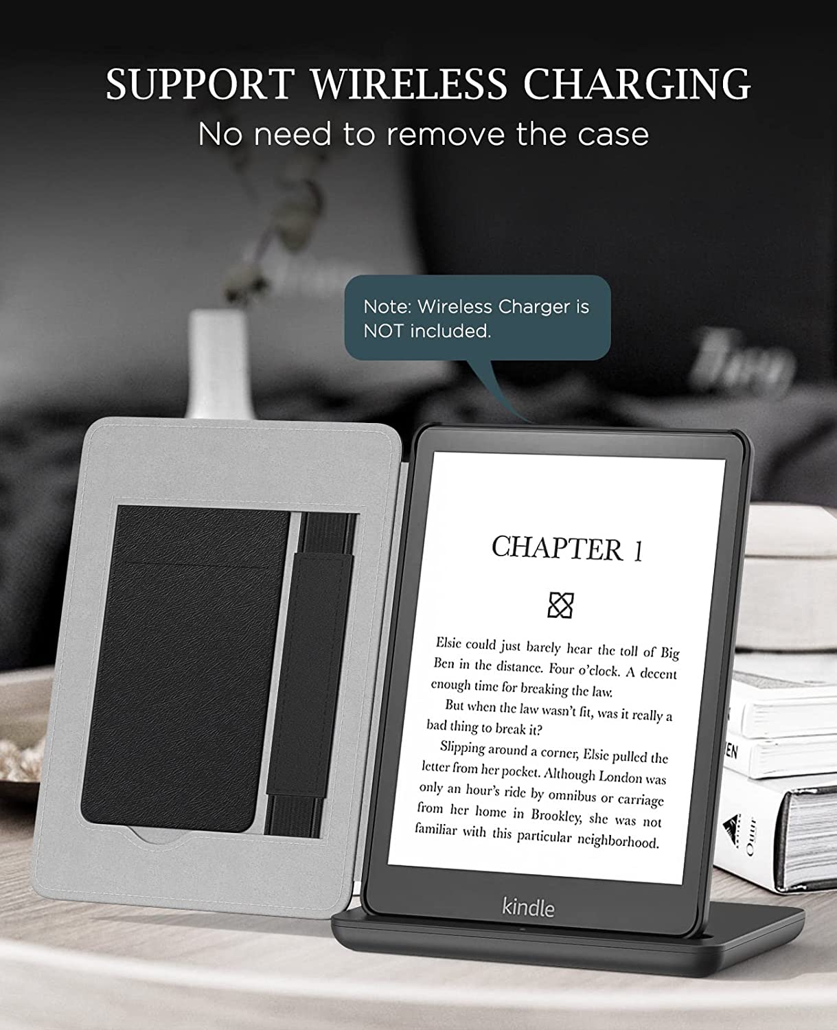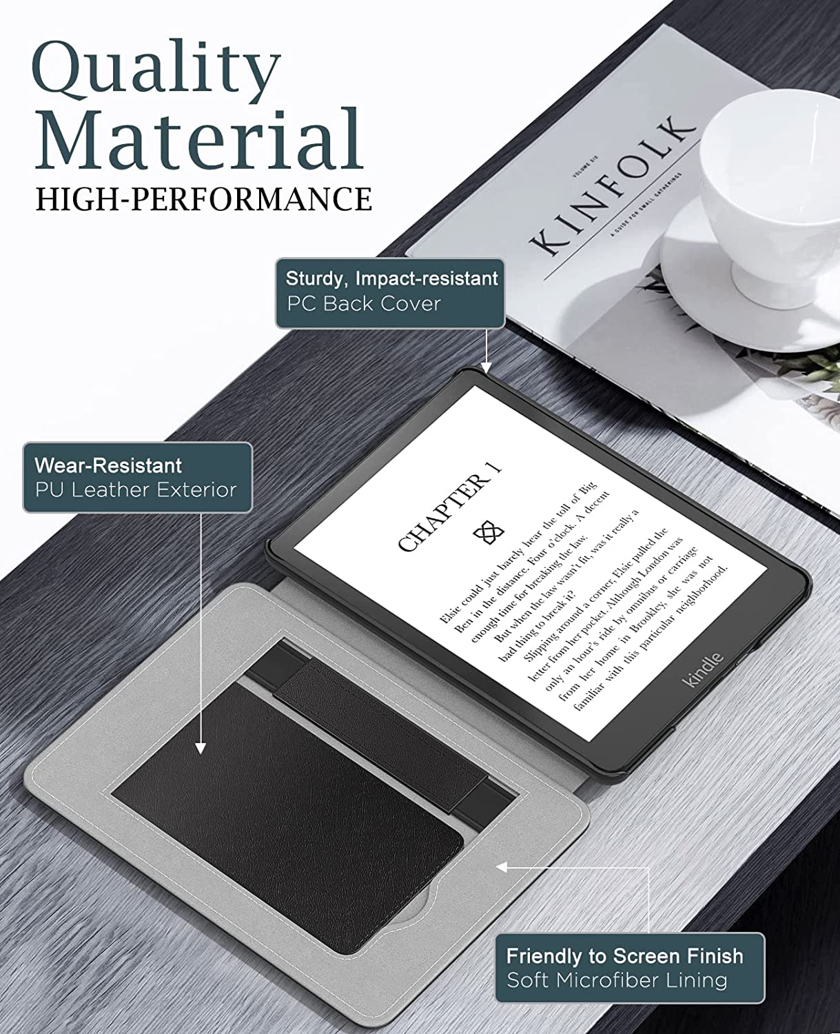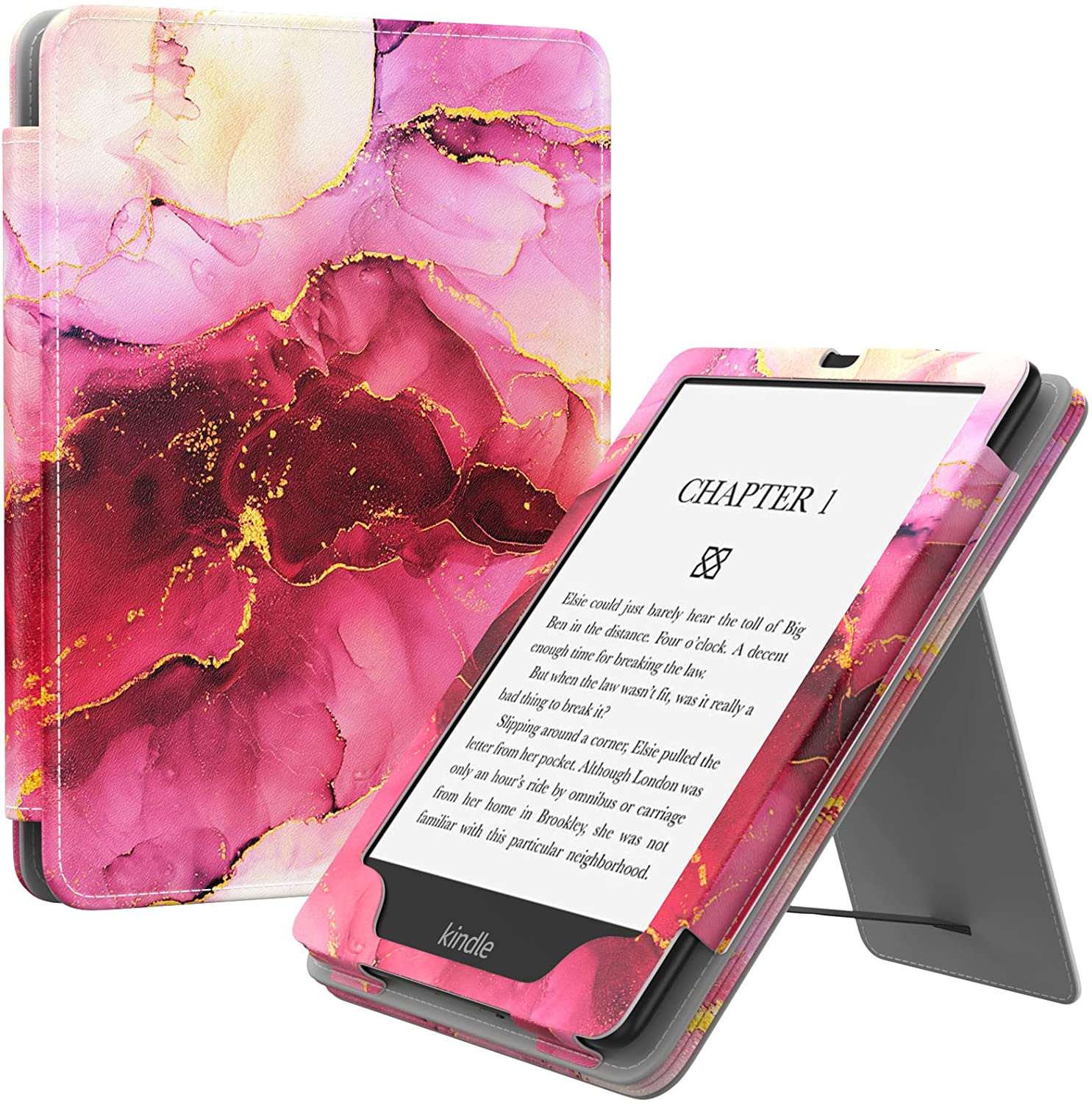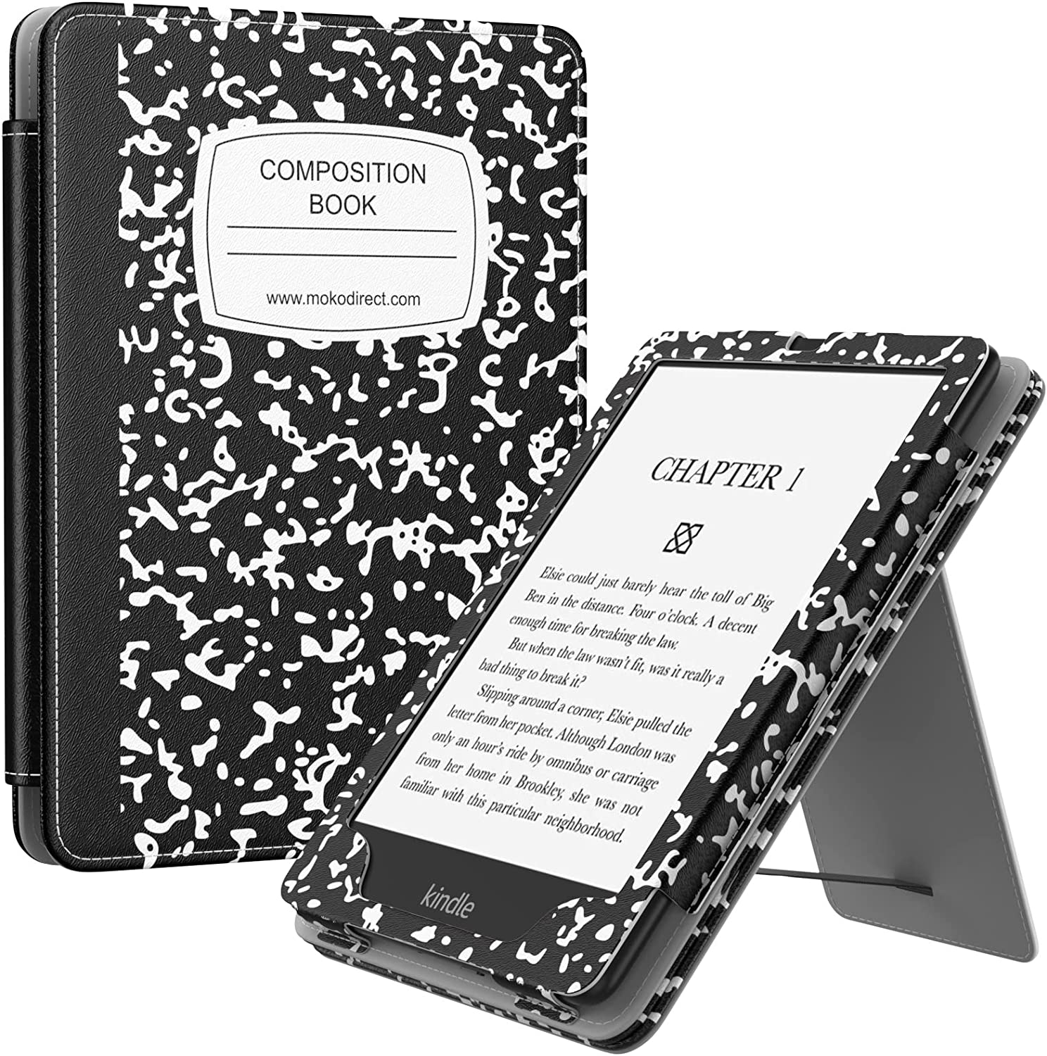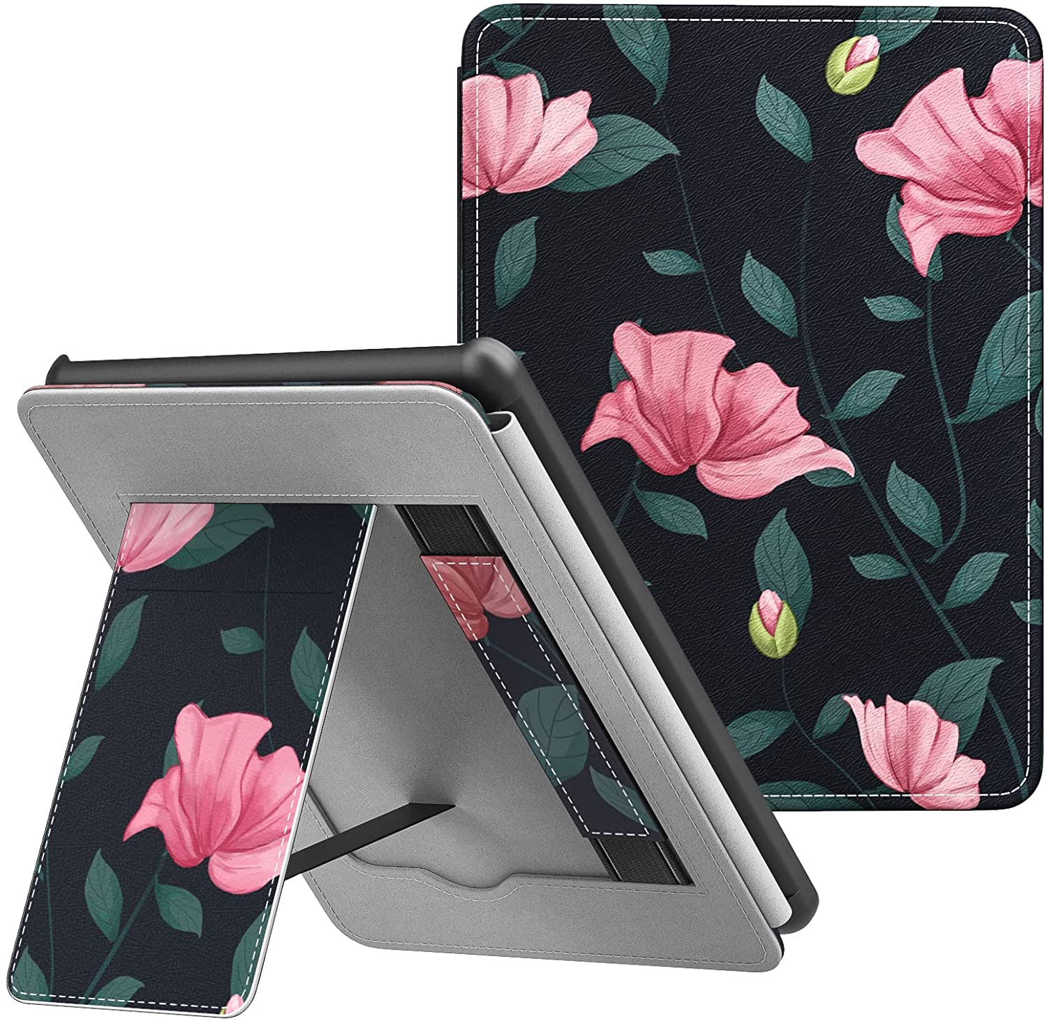 MoKo Case for 6.8" Kindle Paperwhite (11th Generation-2021) and Kindle Paperwhite Signature Edition, Lightweight PU Leather Cover Stand Shell with Hand Strap for Kindle Paperwhite 2021, Black