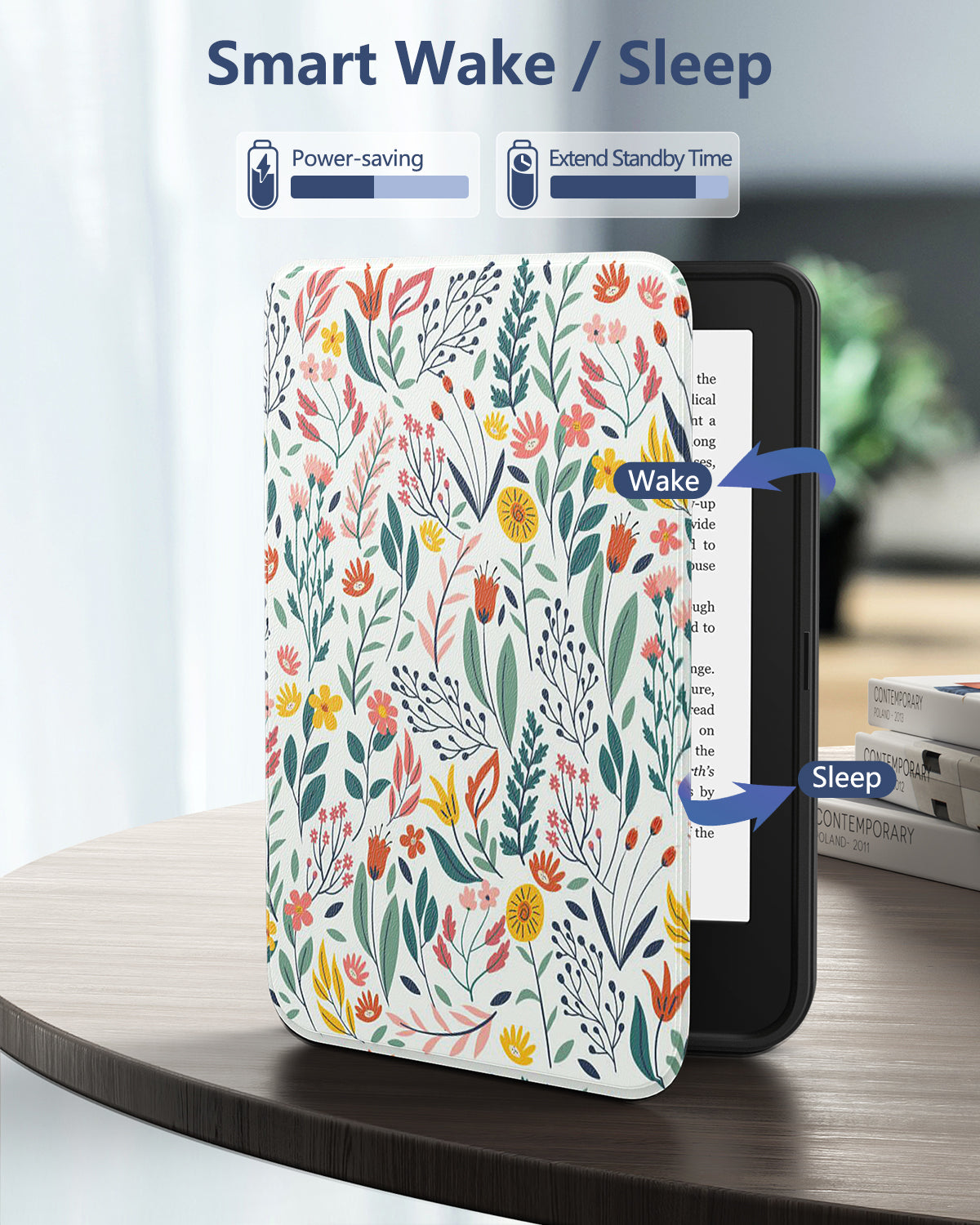 Auto Wake / Sleep Function: The Kobo Clara BW case enables the device to automatically wake or sleep when the lid is opened and closed.