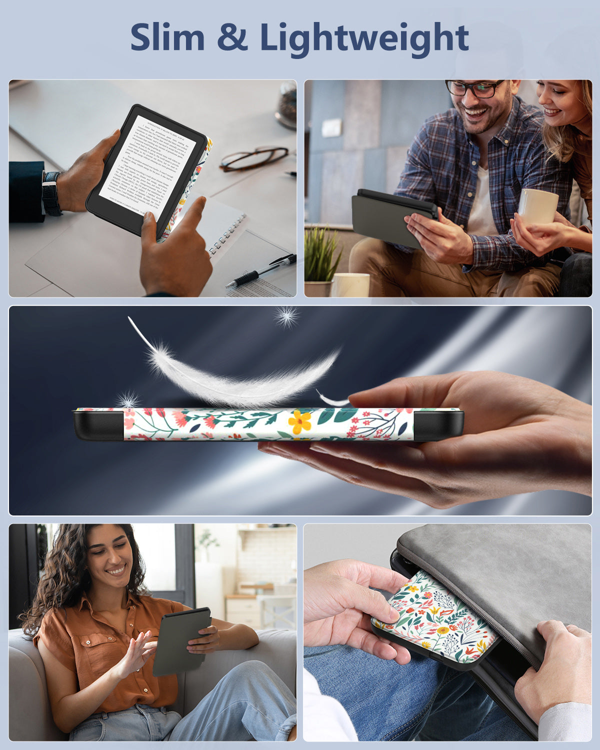 MoKo Case for Kobo Clara BW/Colour/2E 6", Ultra Slim Lightweight Auto Wake/Sleep Cover Folio for Kobo Clara 6" 2024, Flowers