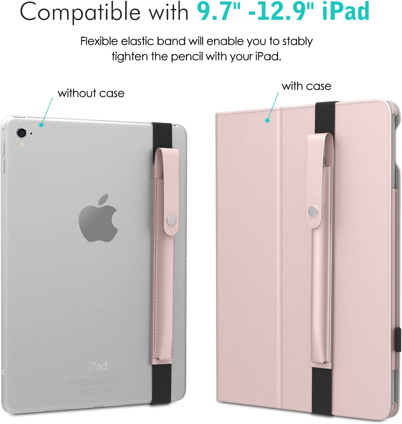MoKo Case Holder for Apple Pencil 1st/2nd Generation, Elastic Detachable Pouch for Apple Pencil, Fit iPad 9th/8th/7th Generation 10.2", iPad Air 5/4 10.9", iPad 9.7", iPad Air 3 10.5",Rose Gold