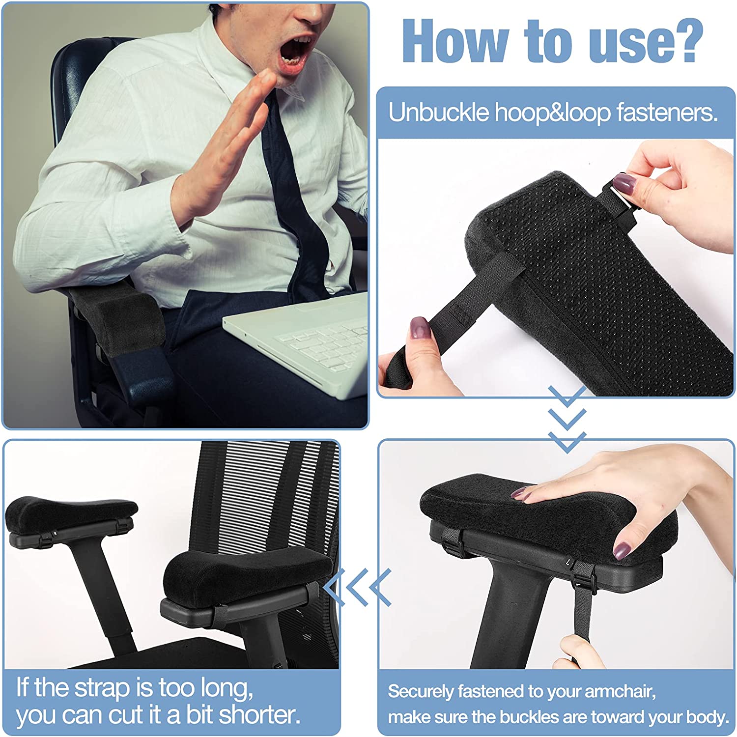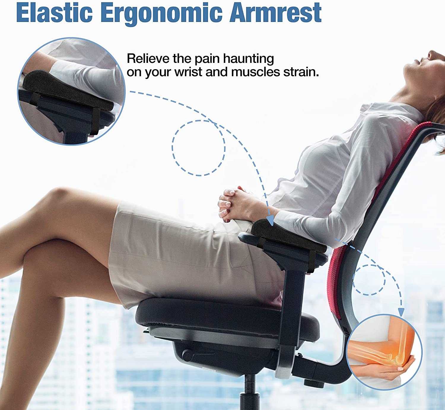 MoKo Ergonomic Armrest Pads, Soft Polyurethane Foam Arc Shape Elbow Pillow - Universal Adjustable Chair Arm Covers for Elbows and Forearms Pressure Relief, Black