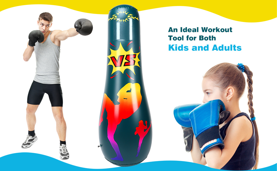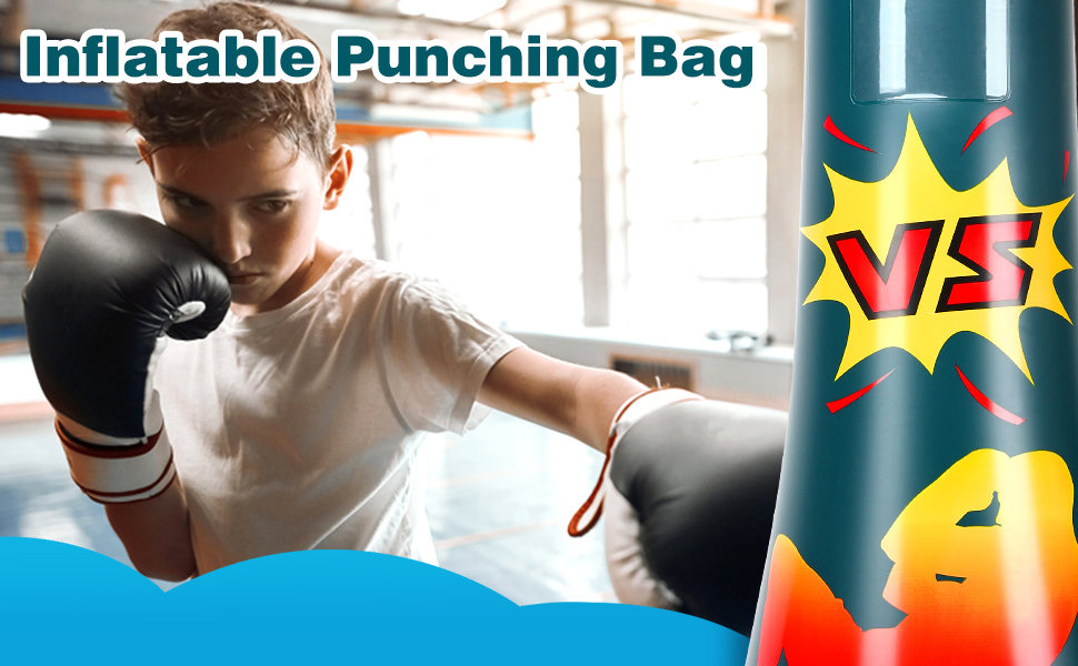 MoKo Inflatable Punching Bag, Punching Bag for Kids Adults Free Standing Boxing Bag Kids Punching Bag Fitness Punching Bag Column Tumbler Sandbag for Karate Taekwondo Decompression Kick Training, Blue