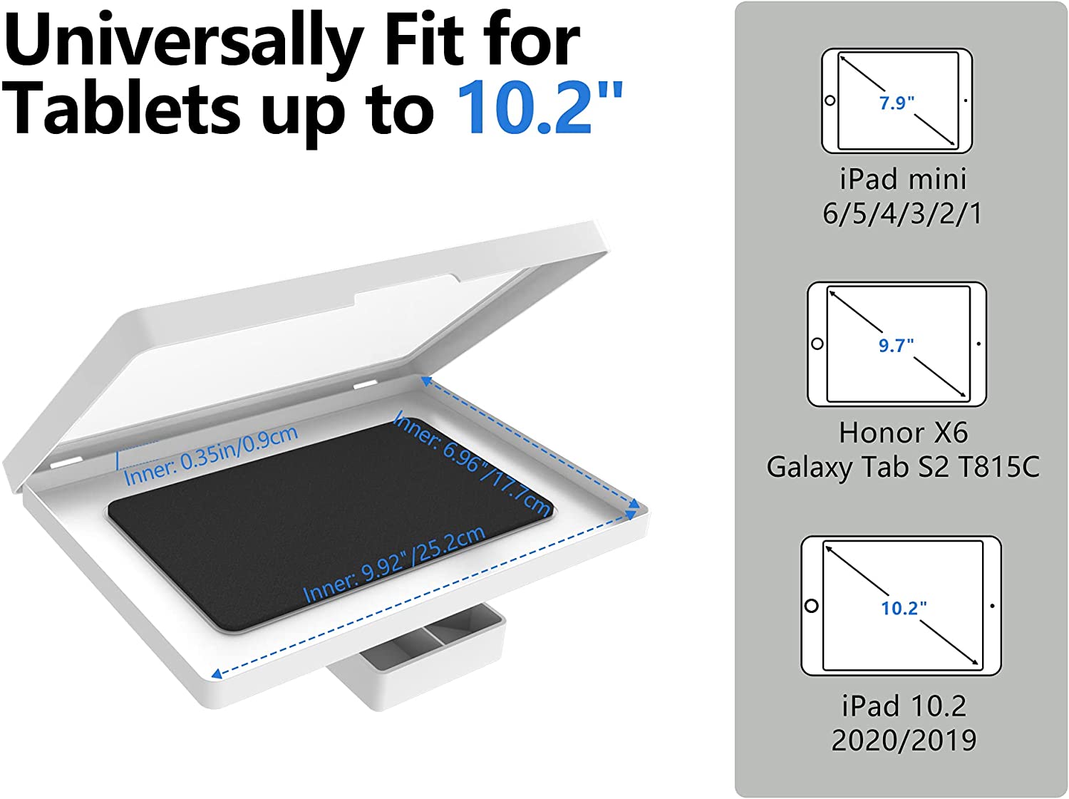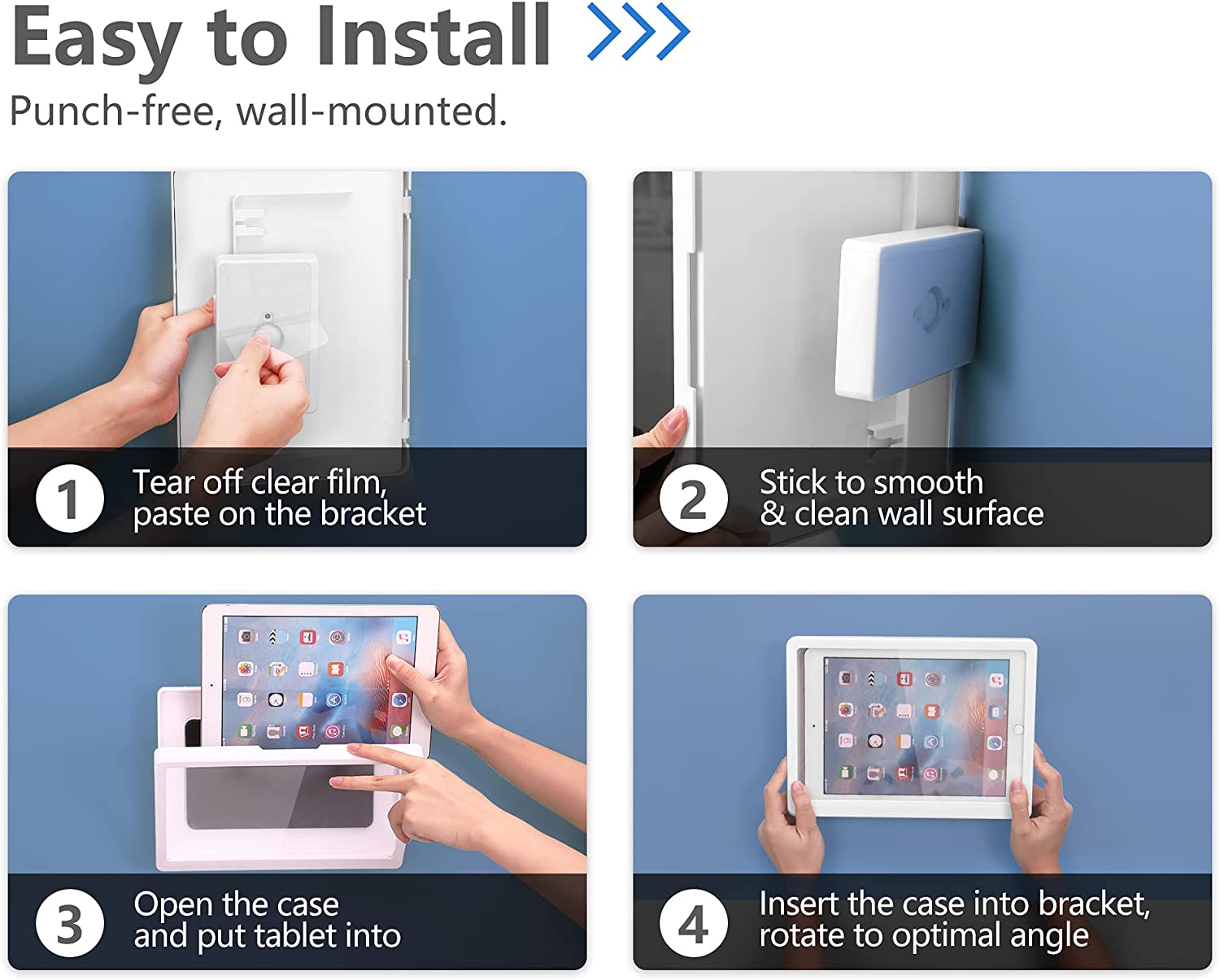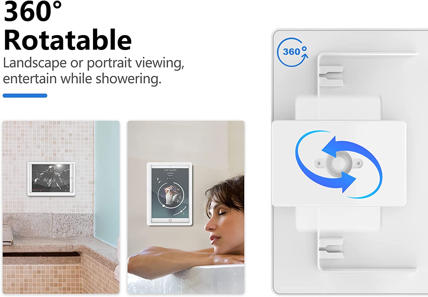 MoKo Wall Mount Shower Tablet Holder, 360 Rotation Waterproof Tablet Holder Bathroom Tablet Case Mount Shelf with Touchable Anti-Fog Screen for Tablets Up to 10.2", Fit with iPad 9 iPad Mini 6, White